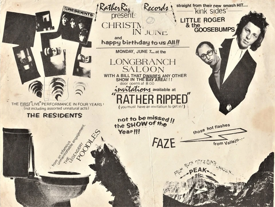 Oh Mummy! Oh Daddy! was a special performance on June 7th 1976 at a party at the Longbranch Saloon celebrating the fifth anniversary of Rather Ripped Records. The Residents showed 16mm clips from their ongoing Vileness Fats movie project at the event, as well as the Third Reich 'n Roll short film.